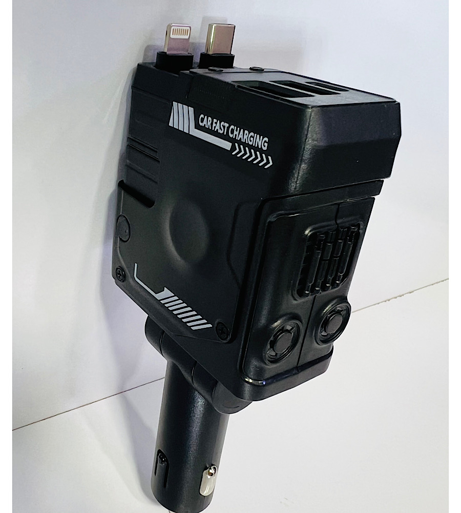 شارژر فندکی oaleدر مجموع دارای چهار پورت خروجی به صورت: دو عدد سیمهای جمع شونده از نوع تایپ سی با خروجی ۳۰ وات واقعی مخصوص گوشیهای اندریید وکابل لایتنینگ با خروجی ۲۰ وات واقعی مخصوص گوشیهای ios است وهمچنین دو عدد پورت خروجی آزاد دیگر با خروجی ۱۵ وات را داراست.
