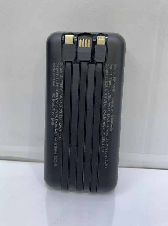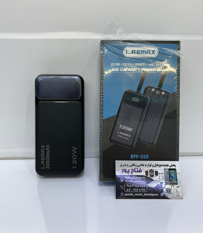پاوربانک 20000 میلی آمپر ساعت فست شارژ ریمکس مدل rpp550محصولی از کمپانی ریمکس است که از نظر طراحی، ظاهری شیک و قابل حمل دارد. این پاوربانک به دلیل این که از مواد مقاوم در برابر ضربه و دمای بالا ساخته شده است از دوام زیادی برخوردار است. یکی از مهم ترین قابلیت های این پاوربانک استفاده از تکنولوژی شارژ سریع با پشتیبانی از پرتکل های مختلف و توان 22.5 وات است که انواع گوشی های هوشمند را درمدت زمان کوتاهی شارژ می کند. استفاده از باتری لیتیوم پلیمری در این پاوربانک موجب شده تا امنیت آن بالاتر رفته و بتوان در سفرهای هوایی نیز از آن استفاده کرد